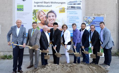 Der feierliche Spatenstich für das Objekt der NBG in 2752 Wöllersdorf-Steinbrückl, Piestingerstraße 7 fand am 16.09.2016 im Beisein von LH-Stv. Mag. Johanna Mikl-Leitner (in Vertretung von LH Dr. Erwin Pröll) und LAbg. Ing. Franz Rennhofer statt. Die Niederösterreichische gemeinnützige Bau- und Siedlungsgenossenschaft für Arbeiter und Angestellte reg. Gen.m.b.H. (NBG) errichtet mit Mitteln der NÖ Wohnbauförderung auf dem Grundstück des alten Feuerwehrhauses in Wöllersdorf eine Wohnhausanlage mit 8 Mietwohnungen in der Form „JUNGES WOHNEN“. Die Wohneinheiten haben eine Größe von ca. 43 m² - ca. 59 m². Die gesamte Anlage wird in Niedrigenergiebauweise mit kontrollierter Wohnraumlüftung und Wärmerückgewinnung errichtet. Im Haus wird ebenerdig jeder Wohneinheit ein KFZ-Abstellplatz zugeordnet. Im Erdgeschoss ist ein Kinderwagen-Abstellraum vorgesehen. Einlagerungsräume werden für jede Wohnung im jeweiligen Geschoss zur Verfügung gestellt. Alle Wohnungen erhalten eine Terrasse. Für die Bewohner gibt es eine allgemeine Grünfläche. Mit dem Bau der modernen Wohnhausanlage soll noch im heurigen Herbst begonnen werden. Eine Fertigstellung ist für Frühjahr/Sommer 2018 zu erwarten.